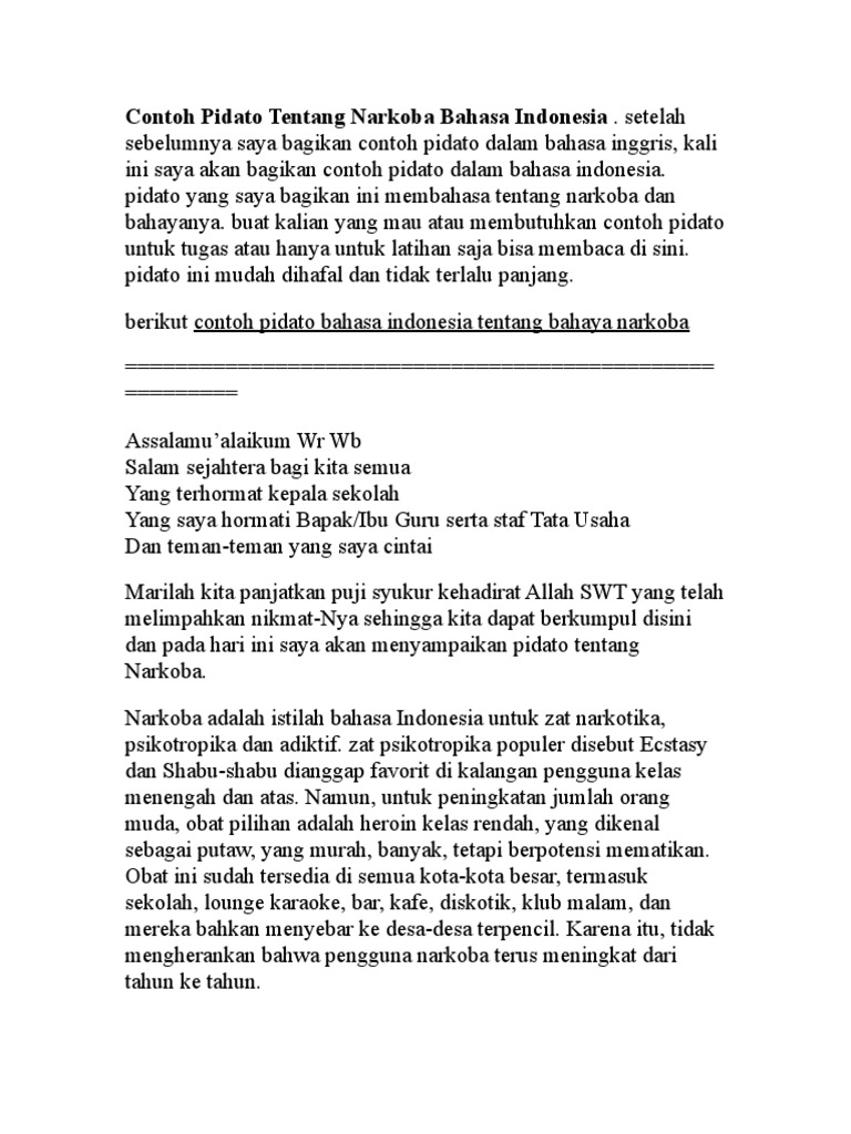 Contoh Pidato Tentang Narkoba Bahasa Indonesia Doc